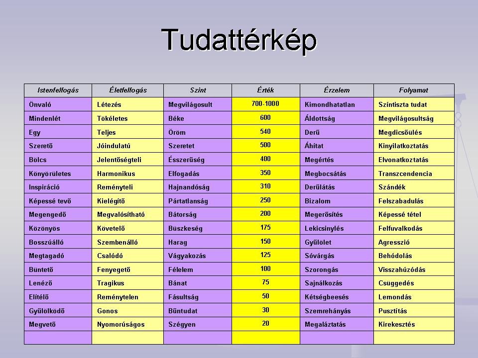 Tanulmányozni fogjuik a tudattérképet; nevezetesen azt, hogy a bátorság,- mint fejlesztendő jellemvonás-, miért lendít hatalmasat rezgés,-és boldogság szintünkön. A legtöbb embernek éppen itt vannak elakadásai, mert nem mer élni, gyáva kockázatot vállalni álmai megvalósításáért, de mondhatjuk úgy is, hogy nincs elég hite. A hit erősítéséhez éppen a tudatos teremtés módszere járul hozzá jelentősen.