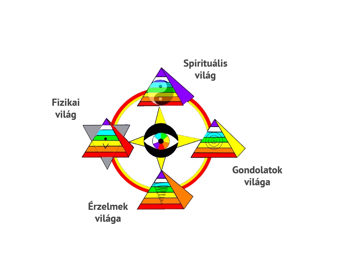 A lényeg, hogy a vágyak célok formájában fogalmazódnak meg, amelyek cselekvés által kézzelfoghatóan is megvalósulnak. A négy dimenziót azért ábrázoltam piramisokkal illetve oktaéderes szerkezettel, mert a késöbbiekben szakrális geometriai szerkezeteket használunk a teremtőerő erősítésére, valamint a geometriák megértése segíti elmélyíteni a spirituális ismereteket, de erről majd később.